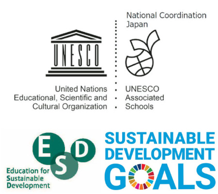だれもが安心して暮らせる未来のためには、持続可能な開発のための教育「ESD」と持続可能な開発のために国連が定める17の世界的目標である「SDGs」が大切です。それらESDとSDGsの推進拠点となっているのがユネスコスクールです。ユネスコスクールは教育を通じて国際理解や人権尊重、持続可能な発展など、ユネスコが提唱する理念をめざす学校です。本校はユネスコスクールに加盟し、学園全体でさまざまなESD、SDGs教育に取り組んでいます。