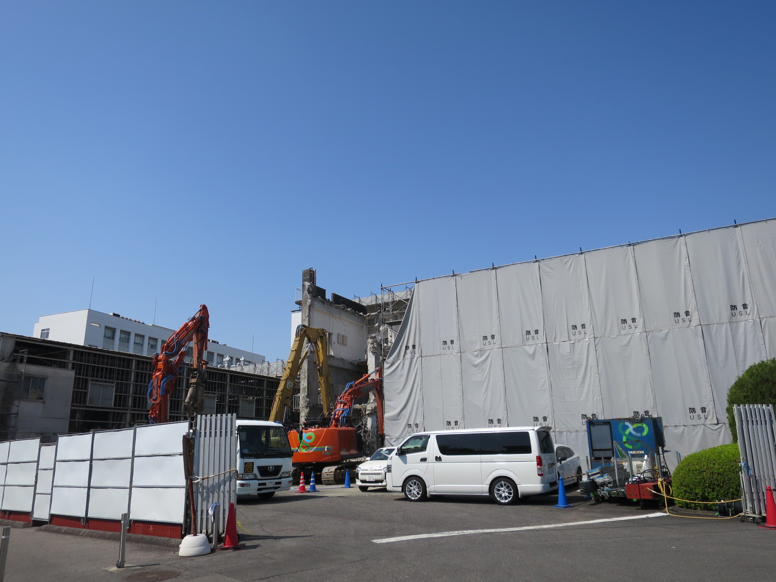 体育館やトレーニング場と文化部の練習室や部室が入る「体育文化センター」建設に向けて、古い建物が取り壊されています。ある意味この風景も今だけですね。