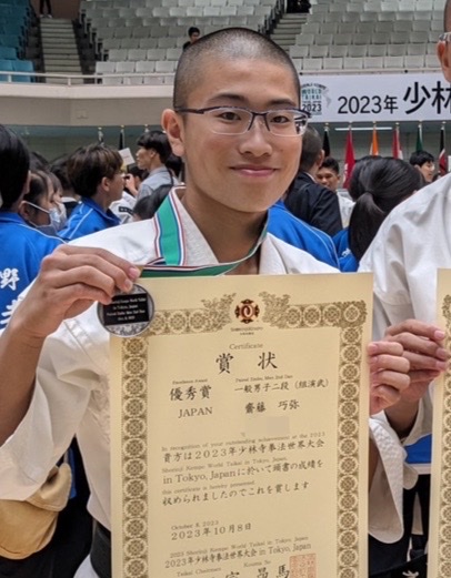 少林寺拳法部の齋藤巧弥さんが、2023年少林寺拳法世界大会に出場し、一般男子二段(組演武)において優秀賞、世界第2位となりました。おめでとうございます!