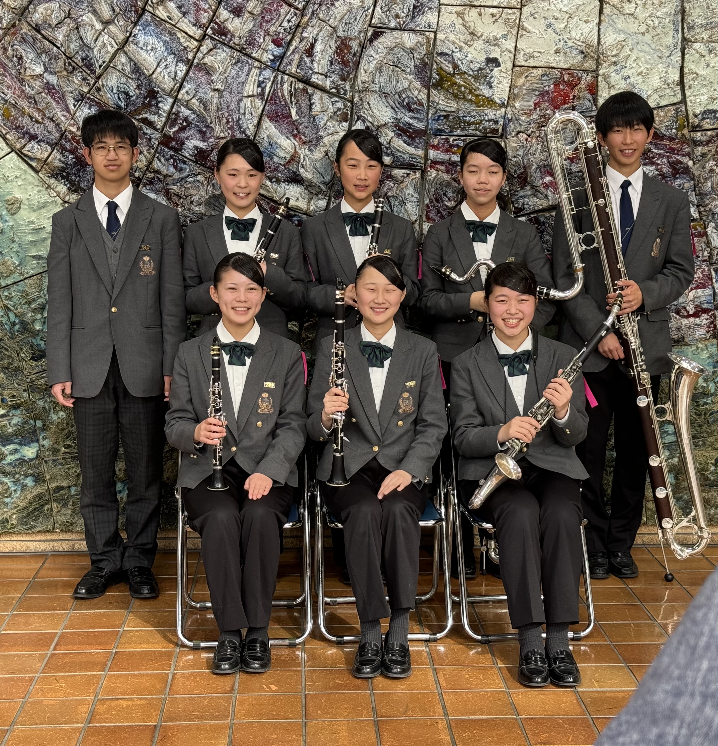 アンサンブルコンテスト県大会で、クラリネット八重奏と金管八重奏が金賞を受賞、サックス四重奏が銀賞を受賞しました。クラリネット八重奏はあと1点というところで東海大会出場を逃しましたが、全チームとも好演でした。